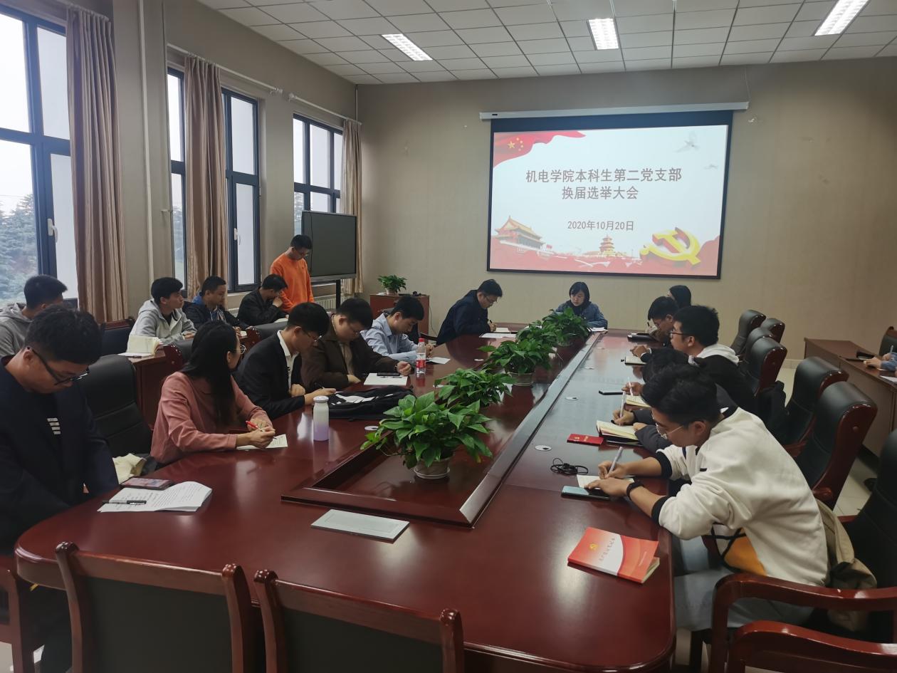 本科生第二党支部换届选举大会在机电楼518会议室举行。本科生第二党支部全体党员参加大会,大会由支部书记王娟娟主持。