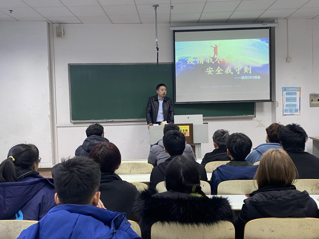 1月14日,为了更好的服务学生,构建全员、全方位育人格局,校友工作办公室(教育发展基金会)副主任汪洋参加装控203班“疫情我尽责 安全我守则”主题教育班会,辅导员李慧敏主持,装控203班全体同学参加。