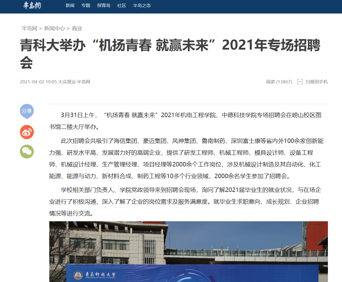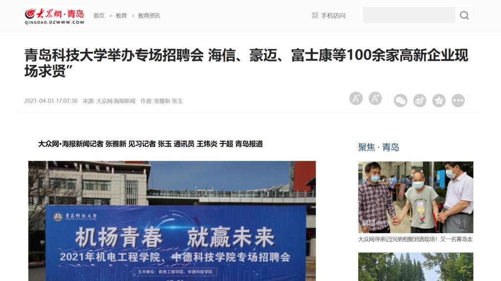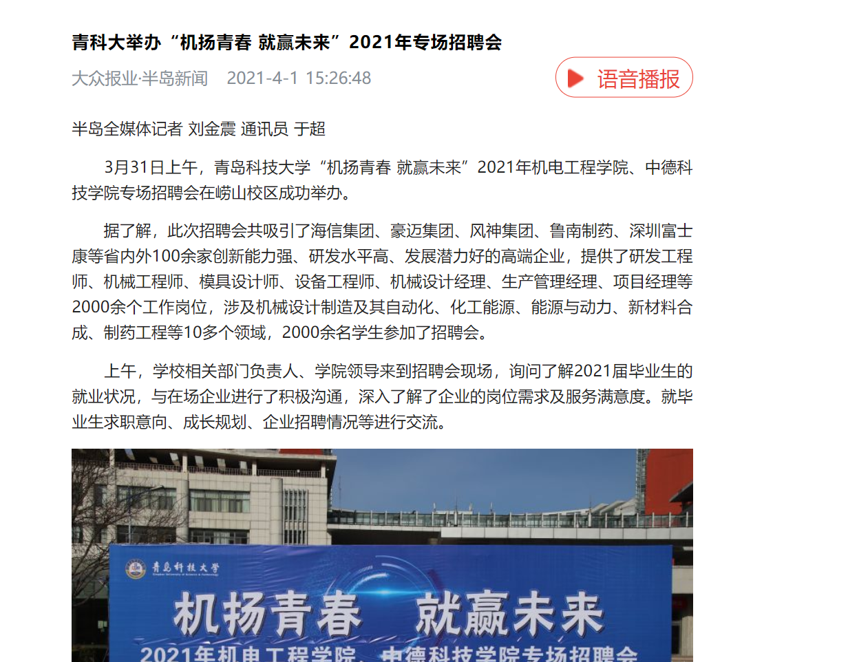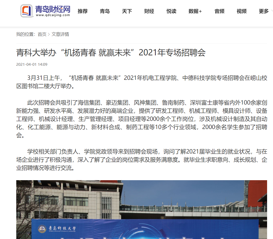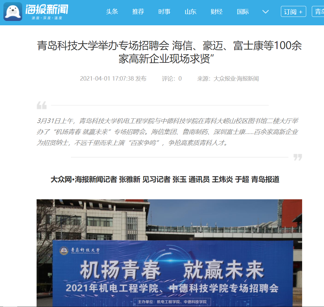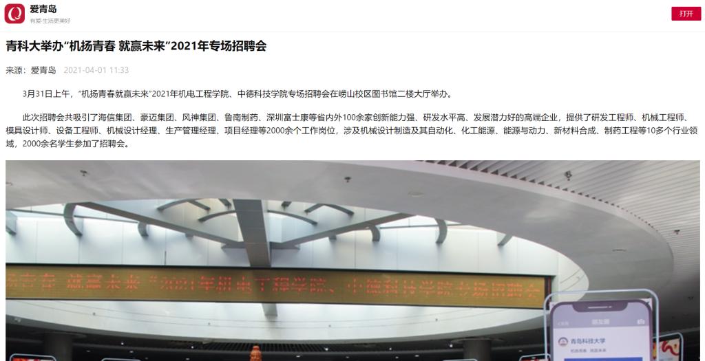 2021年“机扬青春 就赢未来”专场招聘会于3月31日在崂山校区图书馆二楼大厅完美落幕,多家新闻媒体,陆续报道宣传。