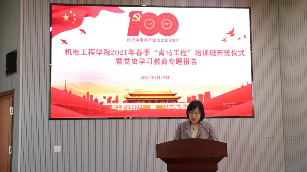 为持续深入推进青年马克思主义者培养工程,庆祝中国共产党成立100周年,用习近平新时代中国特色社会主义思想武装教育青年学生,提高学生干部的理论素养、研究能力和实践水平,坚定学生干部走中国特色社会主义道路的理想信念,学院于4月13日下午在机电大楼505会议室举行2021年“青马工程”培训班开班仪式。学院党委副书记兼副院长肖强、学院团委书记王作辉分别为春季学期234名入党积极分子和88名发展对象讲授党史专题党课。