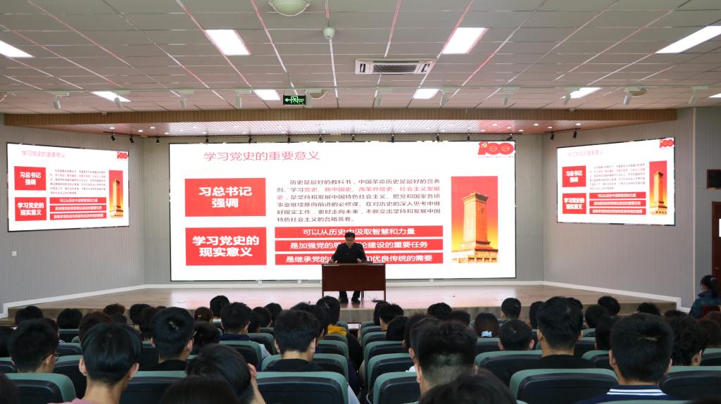 王作辉分别从党的发展脉络和100年的光辉历程出发,分别讲述了新民主主义时期、社会主义革命和建设时期、改革开放和社会主义现代化建设新局面、中国特色社会主义进入新时代四个时期的发展历程,指出,学习党史是坚持和发展中国特色社会主义、把党和国家各项事业继续推向前进的必修课。广大青年要在对历史的深入思考中做好现实工作,更好走向未来,不断交出坚持和发展中国特色社会主义的合格答卷。