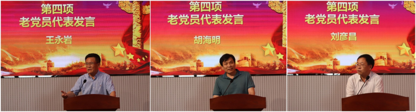 党委关于开展“老党员、新作为”主题实践活动的通知》,党龄满30年的老党员代表王永岩、胡海明、刘彦昌分别结合自身工作实际就入党初心、在工作生涯中如何践行初心使命谈了自己的感悟。