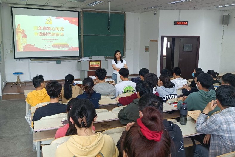 本科生第四党支部在明德楼228教室召开“百年青春心向党,争做时代新青年”主题党日活动。会议由支部书记孙坤岩主持,全体党员参加。
