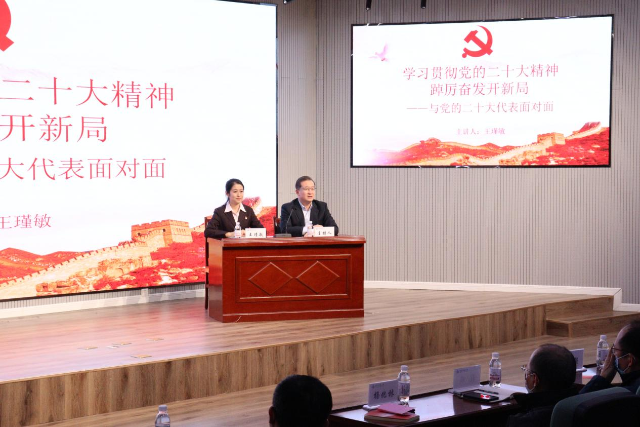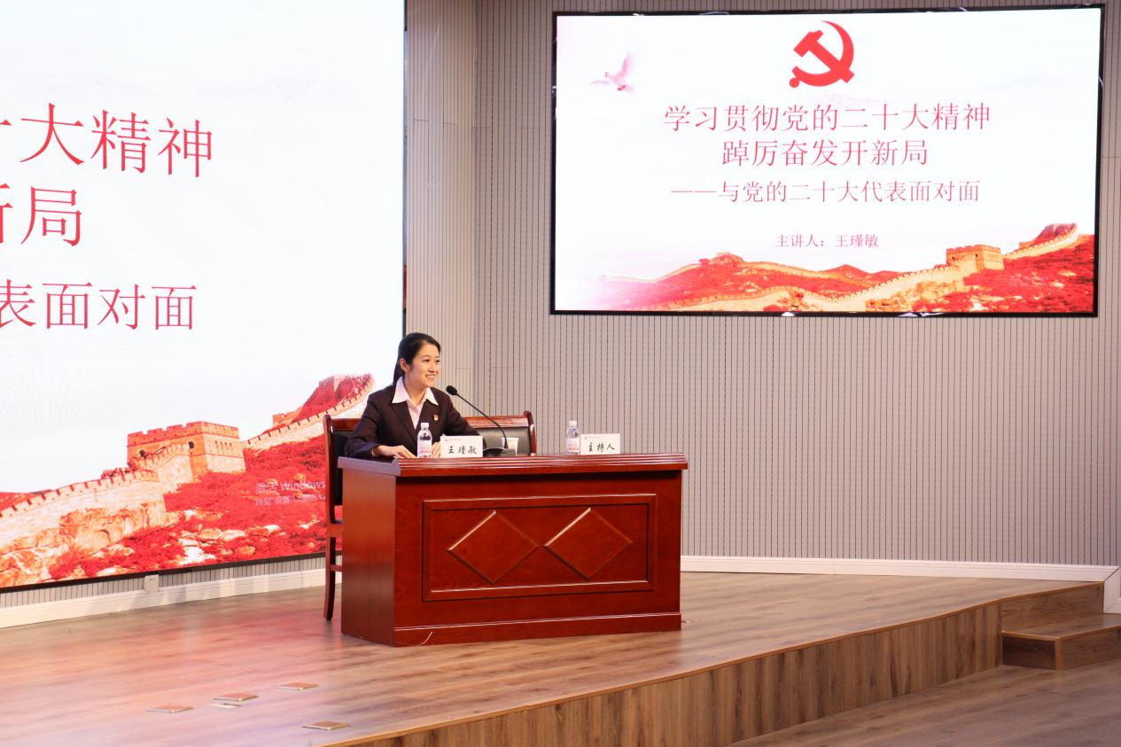 党的二十大代表王瑾敏以《让青春在火热实践中绽放绚丽之花》为题作党的二十大精神宣讲。她从自身参加党的二十大的经历感受出发,用真切的情感、鲜活的事例、生动的语言回顾了党的二十大盛况、系统阐释了党的二十大精神内涵,分享参加党的二十大的所见所感所思所悟,展示了奋斗在基层一线、在平凡岗位上铸就不平凡业绩的二十大代表的闪光形象。宣讲主题鲜明、内涵丰富、思想深刻、鼓舞人心,为探花直播