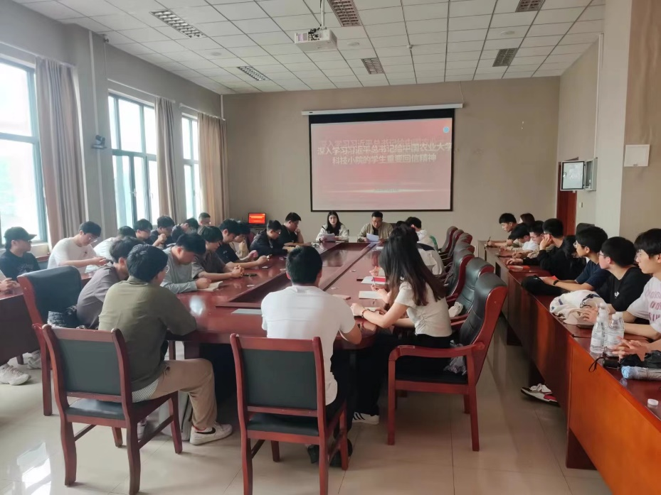 随后,支部副书记王玉凯老师带领党员同志深入学习习近平总书记给中国农业大学科技小院的学生重要回信精神。近日,习近平总书记在给科技小院的同学们回信中提出了殷切期望,并在五四青年节到来之际,向全国广大青年致以节日的祝贺。作为一名中国共产党党员,我们要深刻理解什么是实事求是、怎么去联系群众,青年人要有“自找苦吃”的精神,我们要志存高远、脚踏实地,在乡村振兴的大舞台上建功立业,为加快推进农业农村现代化、全面建设社会主义现代化国家贡献自己的力量。