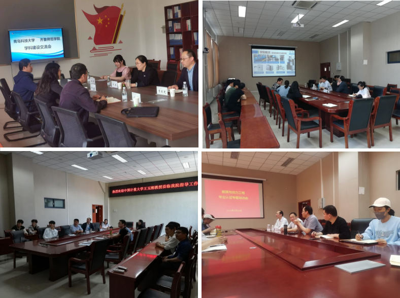 ,邀请浙江大学俞自涛教授、中国计量大学王玉刚教授、齐鲁师范学院物理与电子工程学院院长张洁等相关专家来院交流研讨。并通过线上形式分别与中国石油大学、青岛大学、青岛理工大学、河南理工大学等兄弟院校交流认证申请经验和内部机制执行情况,通过各种渠道的调研,逐步理清国内能动类专业认证现状,最新要求,存在问题,并找准努力方向。