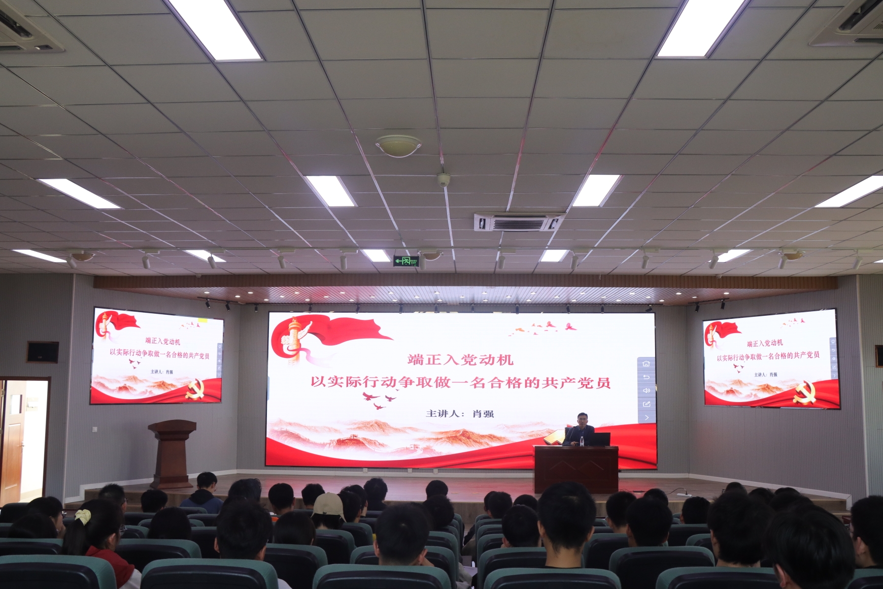 党委副书记兼副院长肖强为学院2023年春季学期入党积极分子讲授了主题为“端正入党动机,以实际行动争取做一名合格的共产党员”的专题党课,104名学员参加了党课。