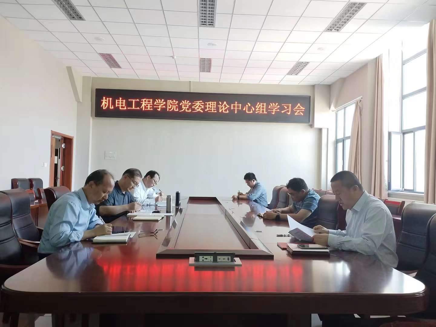 党委理论学习中心组在学院518会议室开展党纪学习教育集中研讨暨2024年第六次集体学习。学院党委理论学习中心组成员参会,学院党委书记任允晓主持会议并讲话。