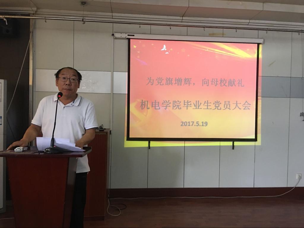 毕业生党员齐聚机电楼五楼大会议室,聆听学院党总支书记孙立军同志的专题党课《加强学习,做合格党员》。