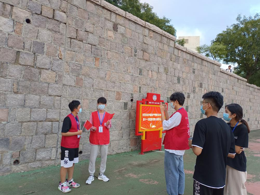 在“声情告白”活动中,青尘义工队的三组志愿者手持五星红旗,分别在明德楼、图书馆、北苑和南苑四个地点邀请同学们进行采访,每位接受采访的同学都可以获得一面小红旗,给校园增添一抹靓丽的中国红。接受采访的同学都热情地回答了志愿者的问题,表达了对祖国的美好祝愿,并在采访最后对摄像头大声地喊出:“我爱你中国!”