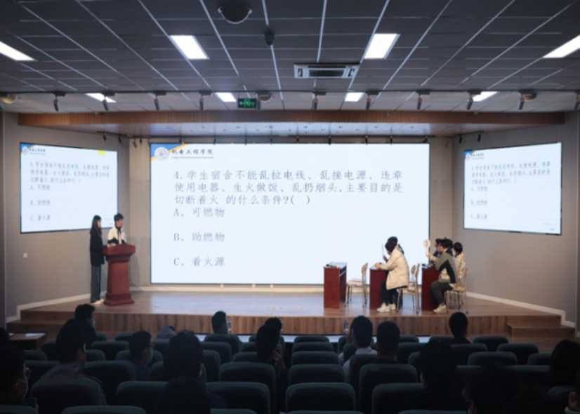 于11月20日举办的“机寓青春 智享生活”主题宿舍文化节知识竞赛。本次知识竞赛共分为两个环节,参赛选手以小组抢答形式分为10组进行比赛。在比赛过程中,各组参赛选手沉着冷静、临危不乱,积极踊跃答题,充分展示了扎实的知识功底和条理清晰的思考能力。