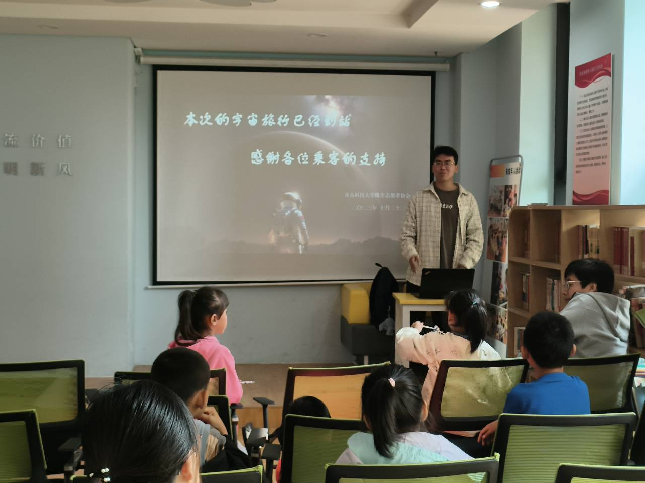 微尘志愿者协会携手延川路社区开展“青春益爱,追锋基层”文化小课堂志愿服务项目。10月22日上午,微尘志愿者协会志愿者面向延川路社区的小朋友们首次开展以“神秘的宇宙”为主题的科普小课堂活动。
