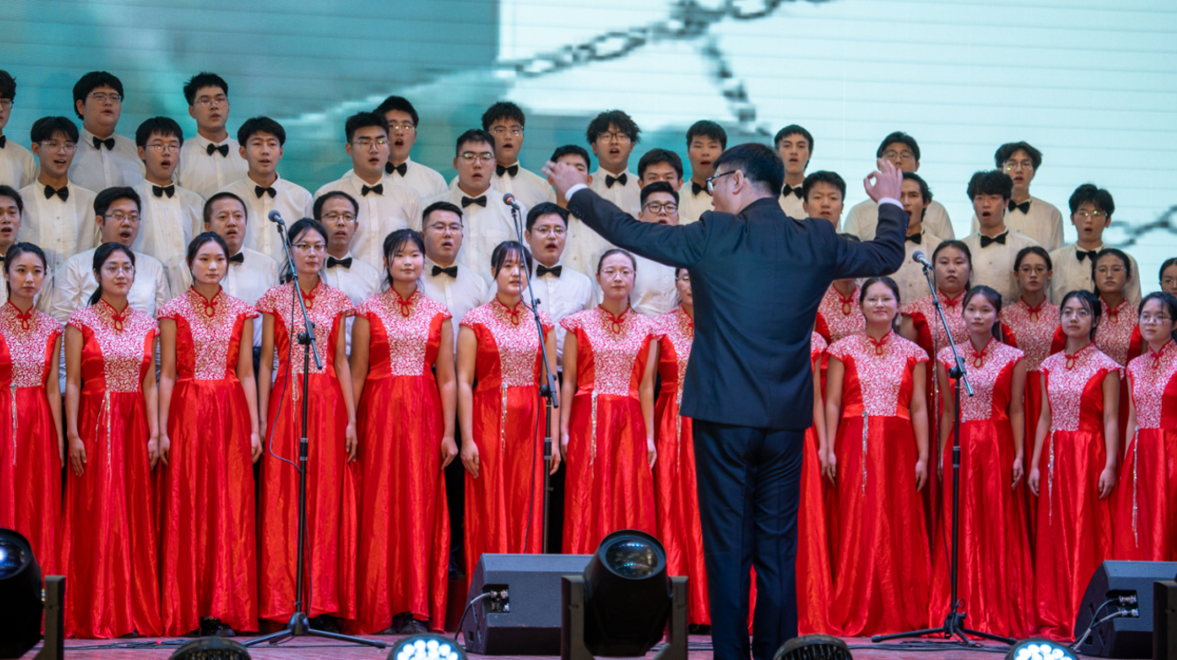 此次合唱比赛不仅是一场丰富多彩的文化艺术盛宴,也是一堂生动的音乐思政课。在庆祝中华人民共和国成立75 周年的光辉时刻,回首新中国一路走来的壮阔历程,无数先辈们的奋斗身影和激昂呐喊仿佛穿越时空,震撼着我们的心灵。学院将阿卡贝拉版《平凡之路》作为演出曲目,通过独特的人声编排与演绎,以清新而坚定的曲调、错落有致的节奏,展现出在新中国建设之路上,中华儿女们坚定的信念与无畏的勇气,表达了对祖国未来发展的无限憧憬与信心。机电青年在训练中磨砺奋进品格,在乐声中感悟先辈精神,志在成长为能担当民族复兴重任的时代新人,为中华民族伟大复兴的壮丽事业奋勇拼搏,以青春之声奏响新时代的奋进乐章!(一审:王子涵,二审:李旭城,三审:宋达)