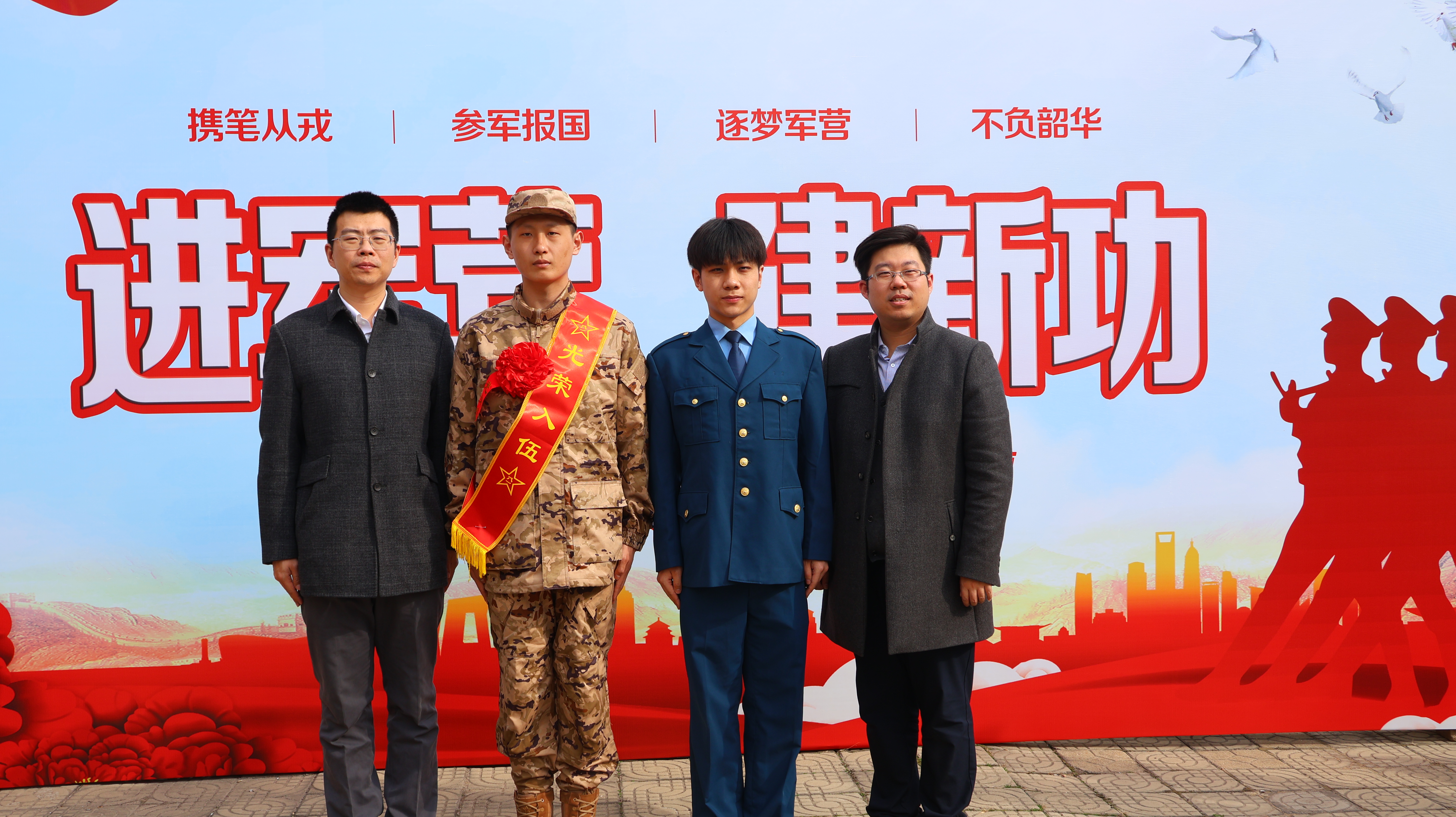 会上,学院荣获“征兵工作先进集体”,辅导员杜康荣获“征兵工作先进个人”。原空军第95795部队退役士兵、2022级本科生刘易作为退役学生代表会上发言,学院2021级毕业生徐玉作为春季应征入伍新兵参加会议。