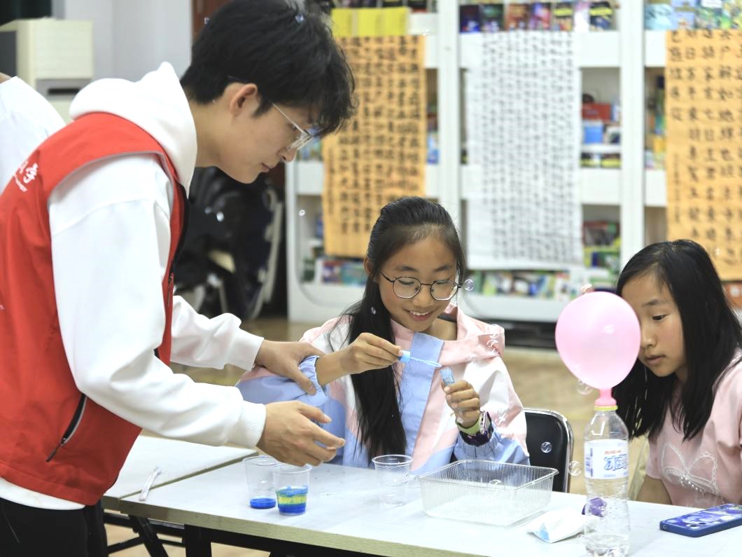 研究生会以科普和实践的方式,为小朋友们带来了一节别开生面的科普活动。此次活动以“生活中的化学—有趣的二氧化碳”为主题,通过“知识讲授+实验操作+思维融合”的创新模式,为社区儿童打造沉浸式科学体验,培养小朋友的问题发现能力和科学探究精神。
