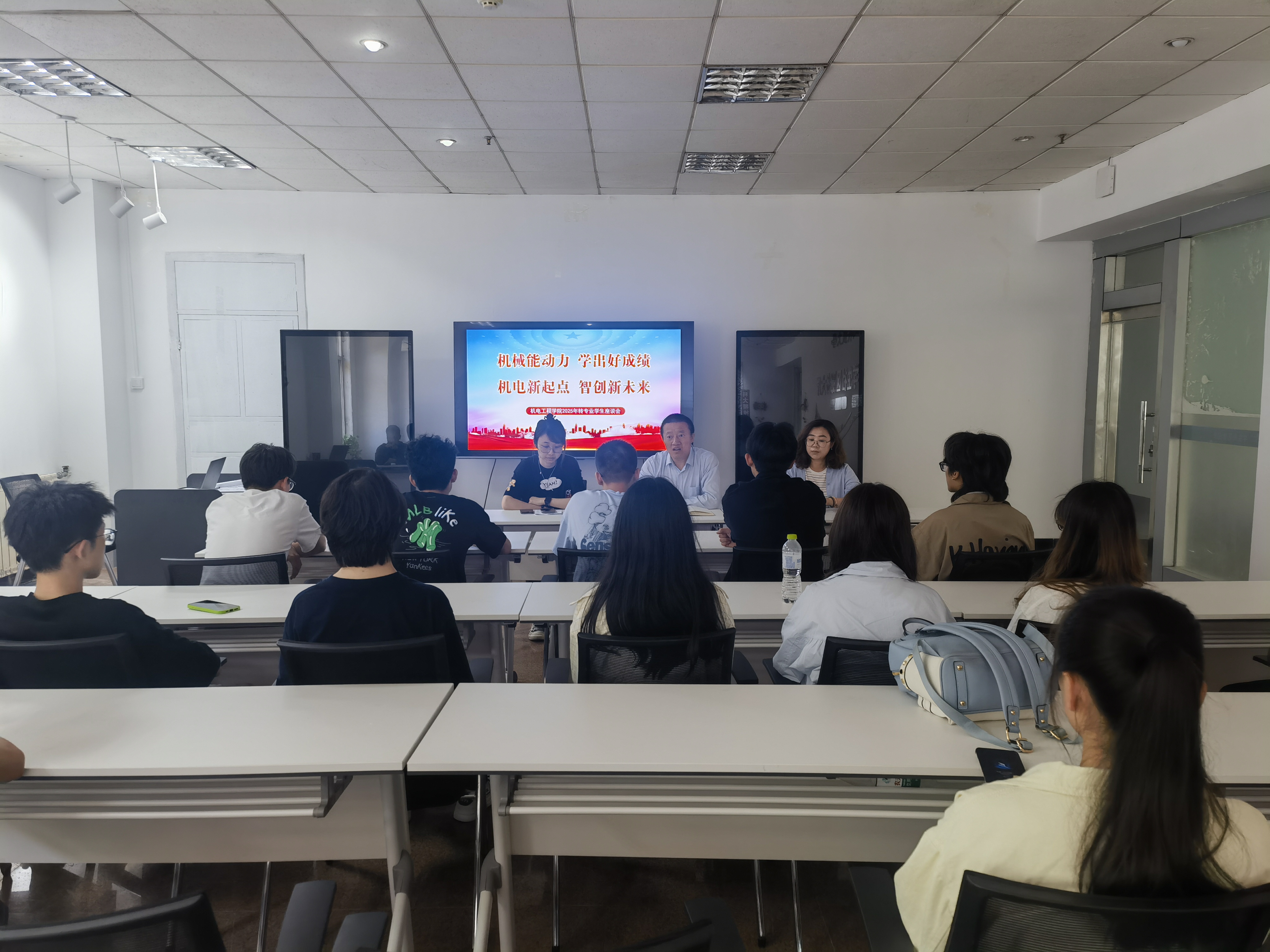 举办“机电新起点、智创新未来”2025年转专业学生座谈会。学院党委副书记杨小明、教学办窦金、辅导员周韫涵、26名转专业学生参加座谈会。