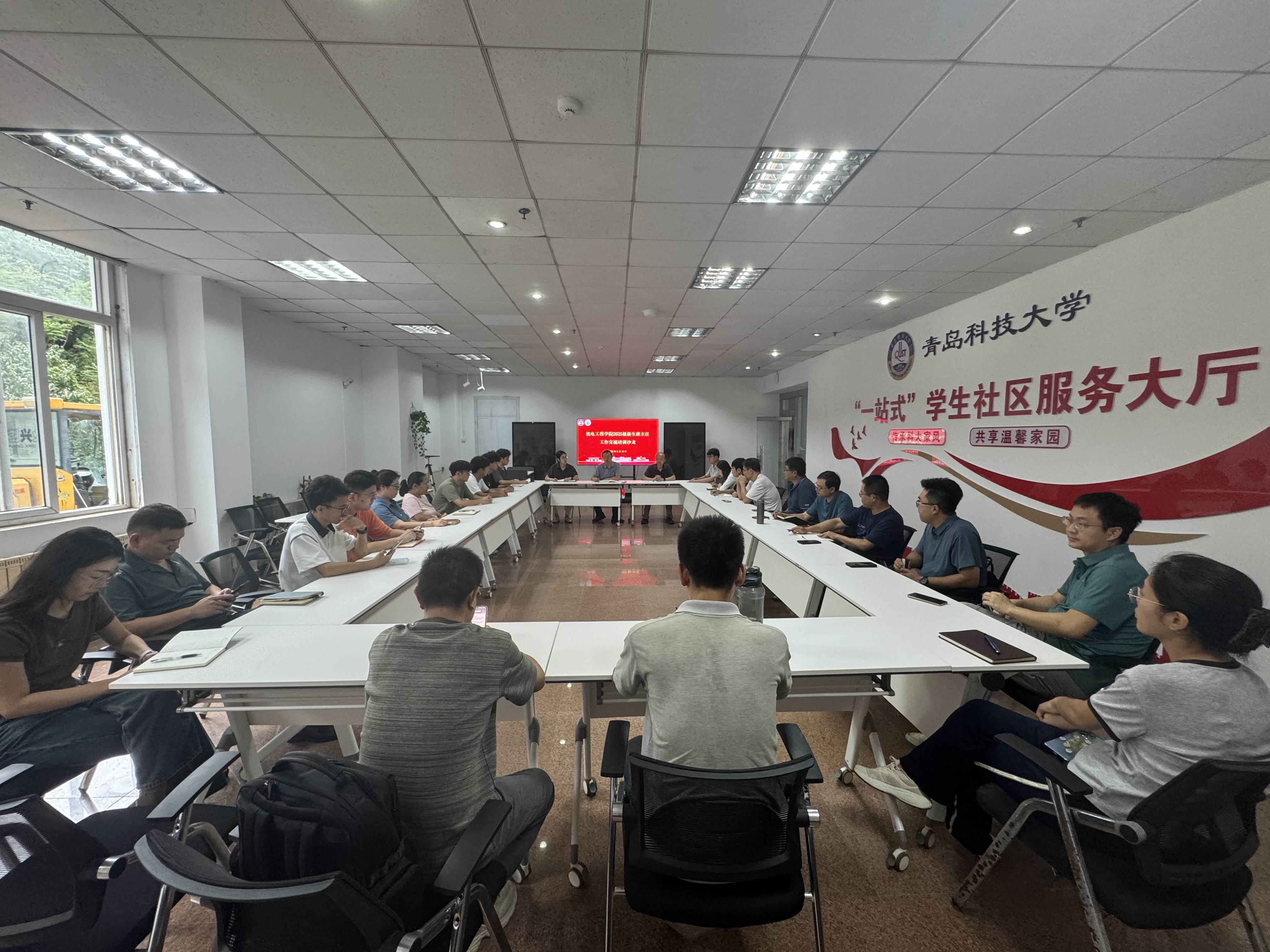 在校一站式社区举办2025级新生班主任工作交流培训沙龙。学院党委副书记兼副院长杨小明、副院长杨化林出席活动,2024级班主任代表、班长代表及2025级新生班主任共30余人参会。会议由学院团委副书记兼学工办副主任李慧敏主持。
