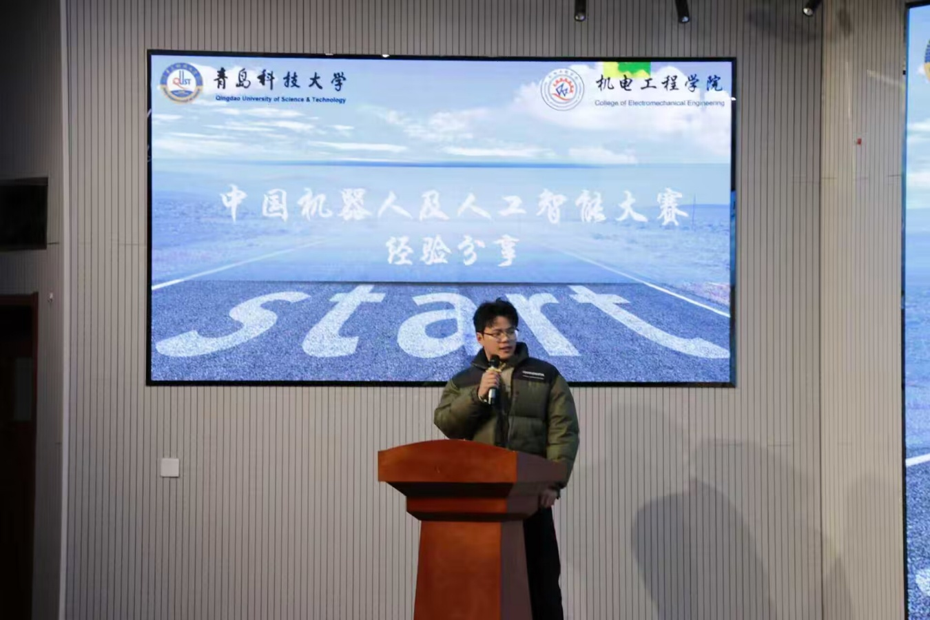 科创部部长覃荣通、张瑞胜作为主讲嘉宾。覃荣通同学结合自身参赛经验,详细介绍了机械工程创新创意类赛事的相关情况及赛程分类,为同学们提供了赛事官方网站、资料查询途径等实用信息,并以丰富的实战经验对赛事要点进行细致解读。他特别强调专业知识积累的重要性,劝勉同学们平衡好学习与科创的关系,让学术知识切实落实到科创实践中。随后,张瑞胜同学以自己参加“中国机器人及人工智能大赛”的参赛PPT为引导,结合实践经验与扎实的理论基础,为同学们深入讲解了人工智能赛道的参赛注意事项。同时,他还重点提醒同学们大学四年的正确度过方式,既让同学们对机器人与数字化设计类竞赛有了全新认知,也为处于迷茫中的同学们指明了前进方向。