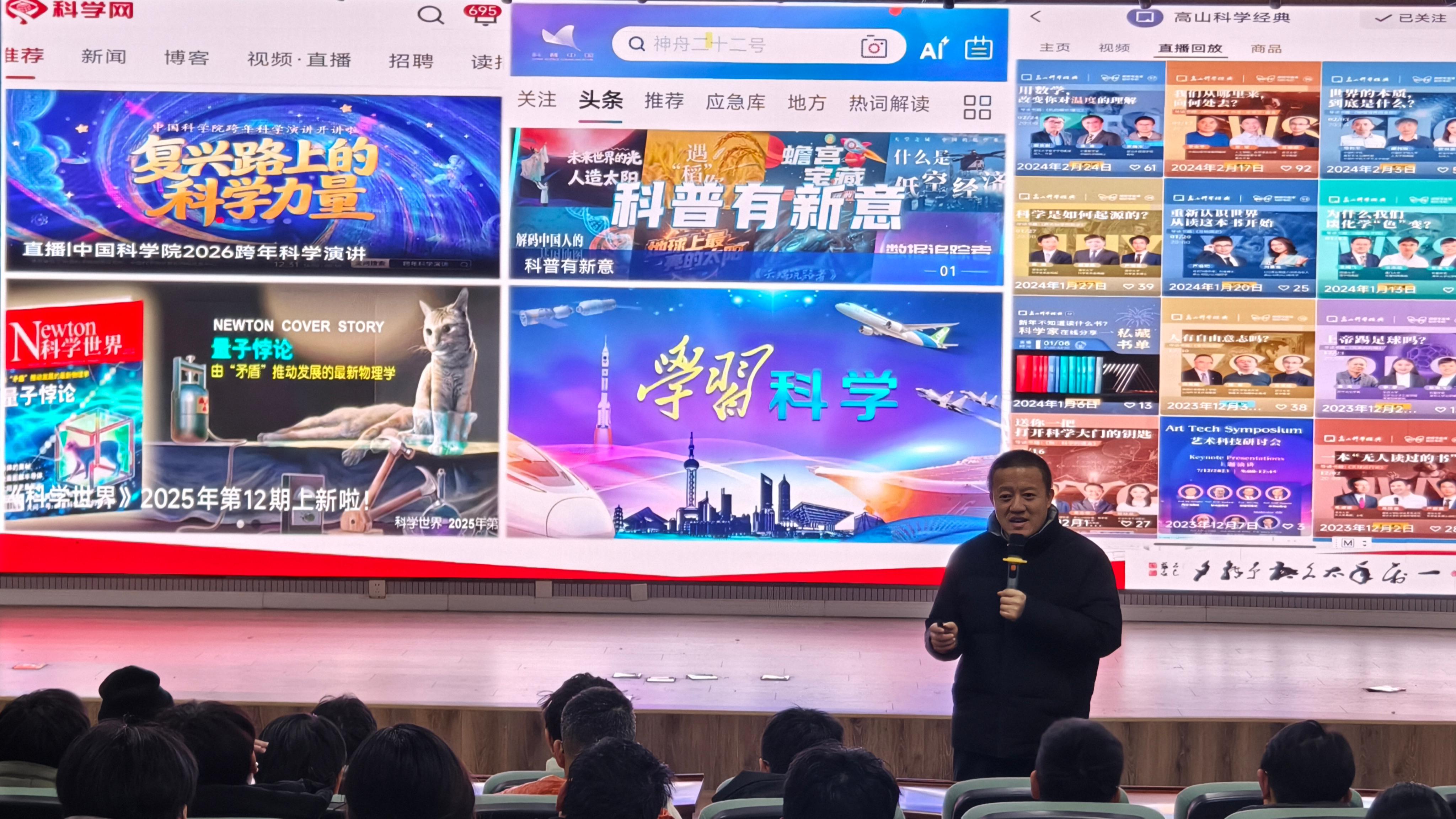 科学技术史学习会成立仪式在D3-530会议室成功举行。大会由学院党委副书记杨小明主持并作了题为“热爱科学、学习科学、运用科学”的报告,协会32名师生成员参会,共同见证学习会成立。现场,协会成员通过观看罗振宇“时间的朋友”主题演讲见证跨年夜的精彩时刻,以知识为友,沉浸式感受人工智能对社会发展、教育变革及个体成长的深远影响,在思想的碰撞中共同迎接2026年元旦的到来。
