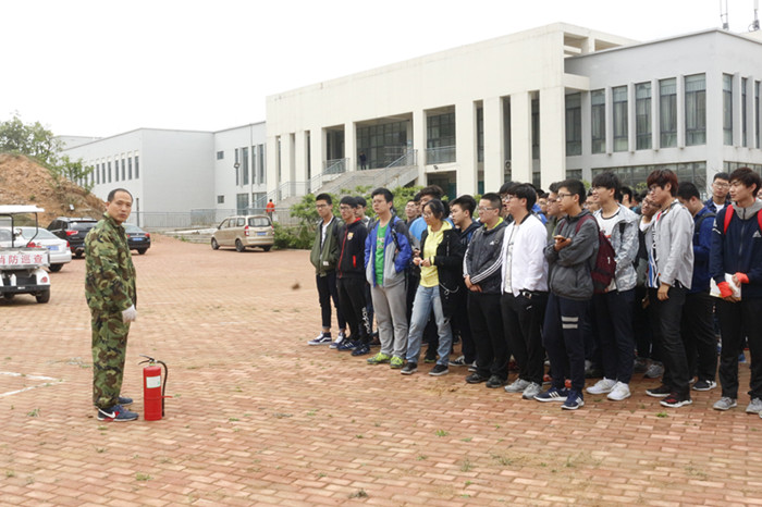 演练开始,指挥长首先为同学们讲解了消防安全应急知识与灭火器使用技巧,教同学们在发生火情时,如何正确地扑救、自救和逃生。随后由同学们自己动手实践,练习使用灭火器灭火。本次演练所用灭火器为干冰灭火器,同学们拨出插销,一手握住开启压把,另一手握住喷射喇叭筒,对准火源喷射,将火源迅速扑灭。学生两人一组完成灭火器使用的练习。全体同学实践练习完成后,此次消防演练顺利结束。