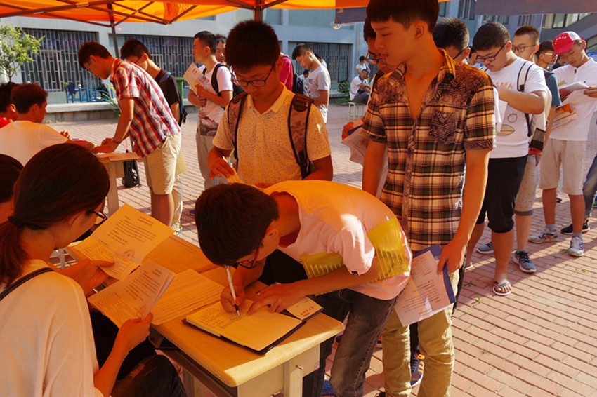 特推出新生志愿者活动,实现新生间的帮、传、带,顺利完成新生的报到工作。新生志愿者着统一服装配合默契,顶着烈日不辞辛苦的往返于各个接待点,为新同学们提供了许多贴心便捷的接待服务。