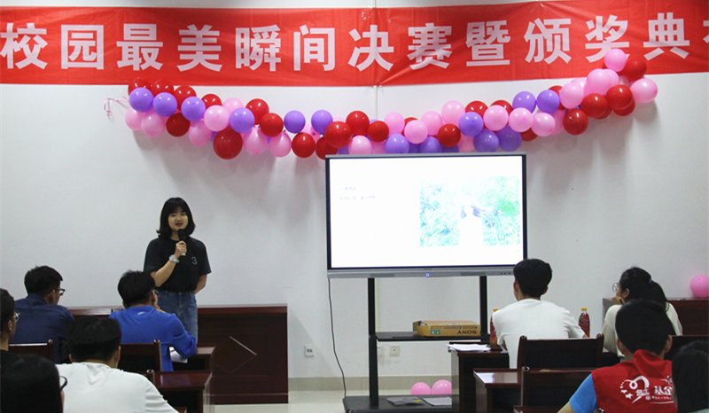 此次活动包括前期作品征集、线上投票、现场作品讲解、评委嘉宾现场打分、观众现场投票五个环节。由参赛选手对自己的作品进行讲解,共16幅参赛作品在所有作品中脱颖而出,为观众们留下深刻的印象。在激烈地角逐中,观众们细细品味,认真投下自己手中的一票。随后,社管委主席董运龙学长总结发言,他告诫学弟学妹在摄影技术越发普及的当下仍要热爱生活,留心观察,用相机记录真善美的瞬间,摄影要有内涵、有意义、有故事,不能只关注技术手法,用内心去发现美。根据评委打分和现场投票加,本次比赛最终决出一等奖1名、二等奖1名、三等奖1名、优秀奖7名,社管委主席和各部门会长分别为获奖选手颁发了荣誉奖状和奖品。至此,寻找校园最美瞬间决赛活动圆满落幕。