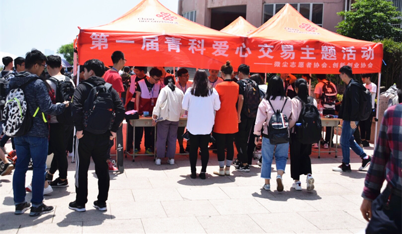 创新创业协会和微尘志愿者协会联合举办了“爱心交易市场”公益活动。