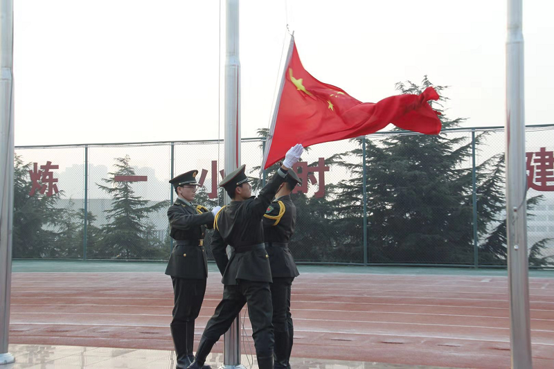 国旗护卫队参与升旗。鲜艳的红旗在冬日的清晨中冉冉升起,象征着中国新时代新青年以及背后的祖国,如日方生。在场的每一个人向国旗行注目礼,深怀着对祖国无限的热爱和崇高的敬意。随后探花直播