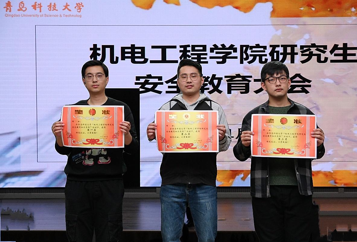 常态化疫情防控宣传教育明白纸》,号召同学们认真学习传染病预防的相关知识,严格遵守学校常态化疫情防控各项要求,提高抵御风险的能力;研究生会执行主席江峰结合诸多宿舍安全事故案例,进一步强调宿舍安全的重要性,并总结了在宿舍内遇到突发事件的应对措施。大会第二环节为知识竞答,参赛选手们以班级为单位分组进行日常安全、卫生相关知识的抢答。最终193班、202班、206班分获比赛前三名。