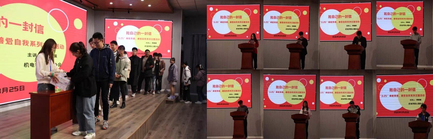新颖而温馨的活动吸引了众多同学积极参与,信箱中堆满了一封封承载信念的书信,同学们随机抽取并互相分享“写给自己的一封信”,内容温情动人、感情真挚。匿名朗读的方式让在座的同学从他人的笔触中得到了温暖和鼓舞。同学们在参与的过程中抒发了对自己的美好祝愿,把“3.25”作为起航,寓意“爱自己是人生的起点”。