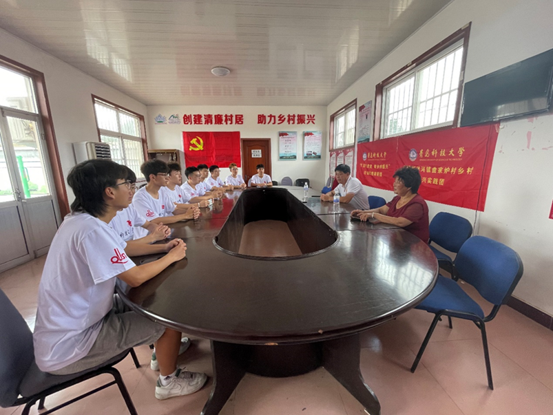 暑期乡村振兴实践团赴青岛胶州洋河镇曲家炉村进行社会调研实践活动。在带队老师郭佩佩的带领下,针对乡村发展、果园种植等问题分别对村支书进行了采访。