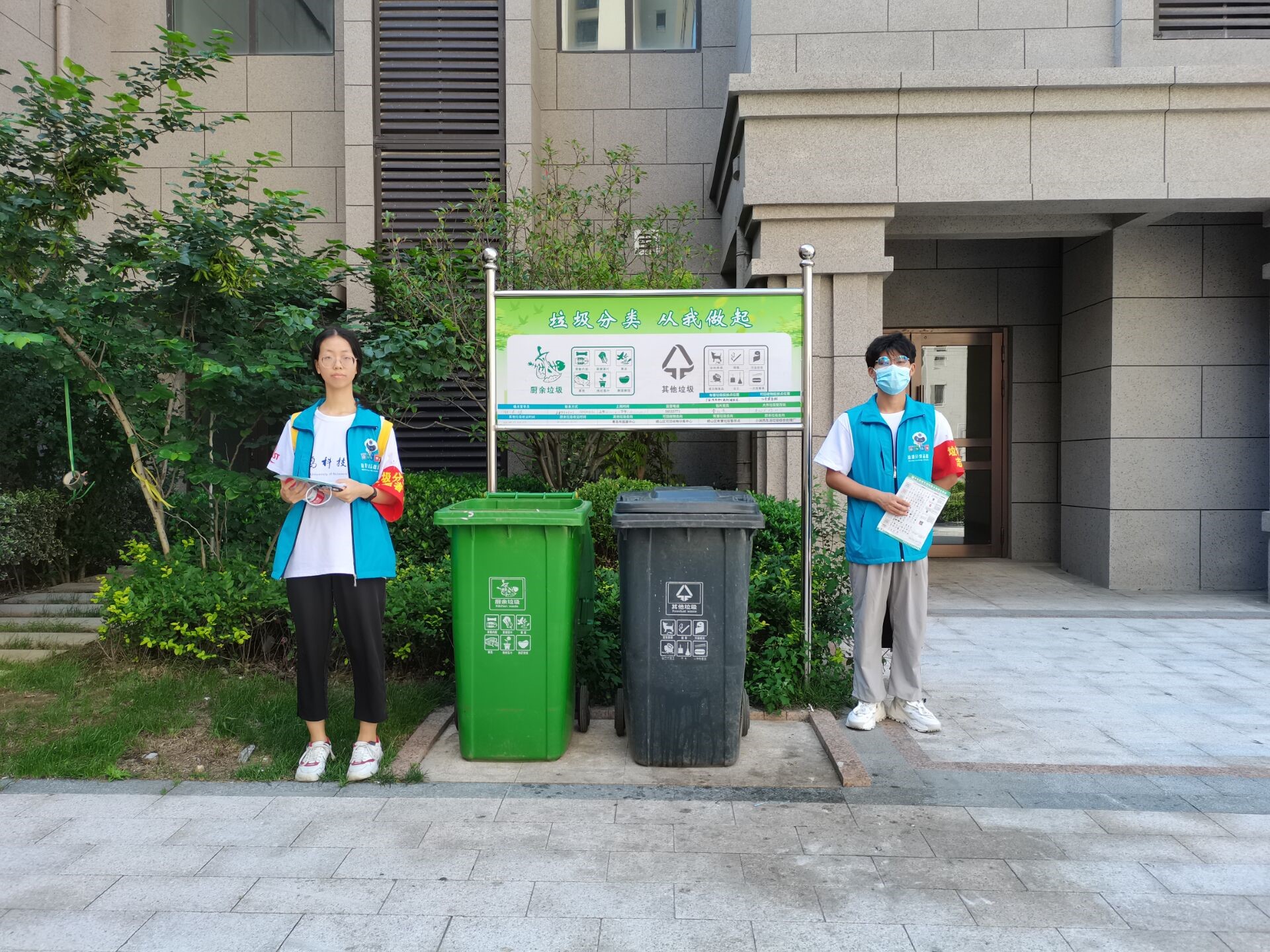 在工作人员引领下,队员们在社区积极开展了驻通引导工作。活动过程中,队员分为三组在社区垃圾桶旁对下楼扔垃圾的居民进行了垃圾分类知识的讲解与对上门回收美家APP的推行。当日的高温为志愿服务团带来了身体素质与毅力上的挑战,但工作过程中,队员仍表现出了工作耐心,语言得体,举止礼貌的形象。在队员的耐心讲解下,许多居民对垃圾分类知识有了进一步的认识,并对垃圾分类及资源的重复合理利用持一种支持而积极的态度。引导过程中队员也相继得到了居民的认可与鼓励,这给团队相当大的鼓励。