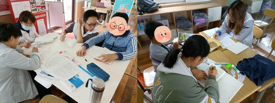 上午,小朋友们到达“未来同伴”义教工作站,与志愿者们互相了解后开始完成自己的课后作业,志愿者们在一旁细心地辅导孩子们的功课,解答他们的问题,了解孩子们的近期情况,并一同制订下周的目标计划。志愿者们积极主动地引导着孩子们自主学习,鼓励式地辅导让孩子们建立起自信,更加努力地朝下一个目标迈进。