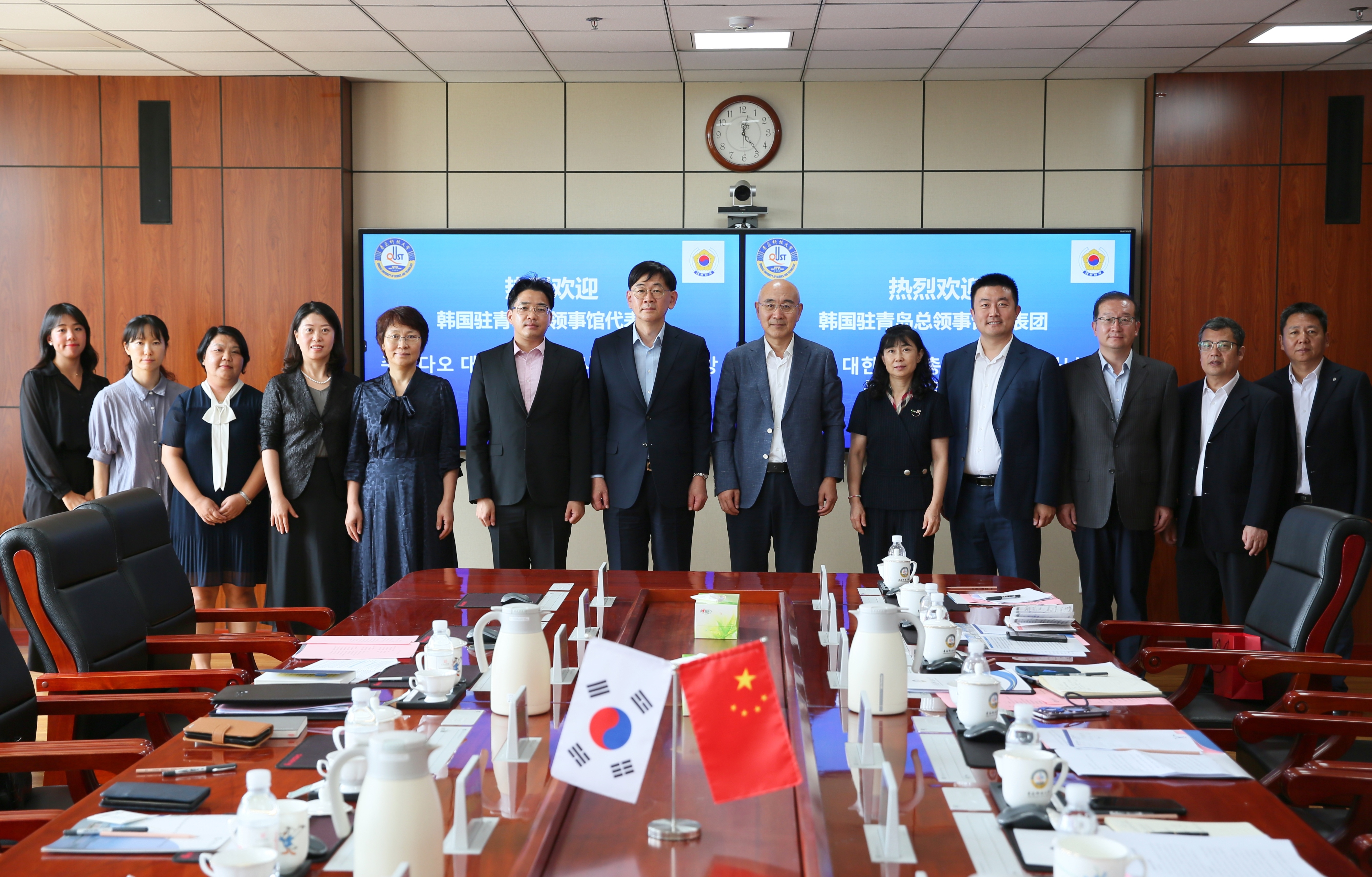 8月22日,韩国驻青岛总领事馆总领事柳昌秀一行来访,校长陈克正会见并座谈,党委副书记沈文青主持会议。