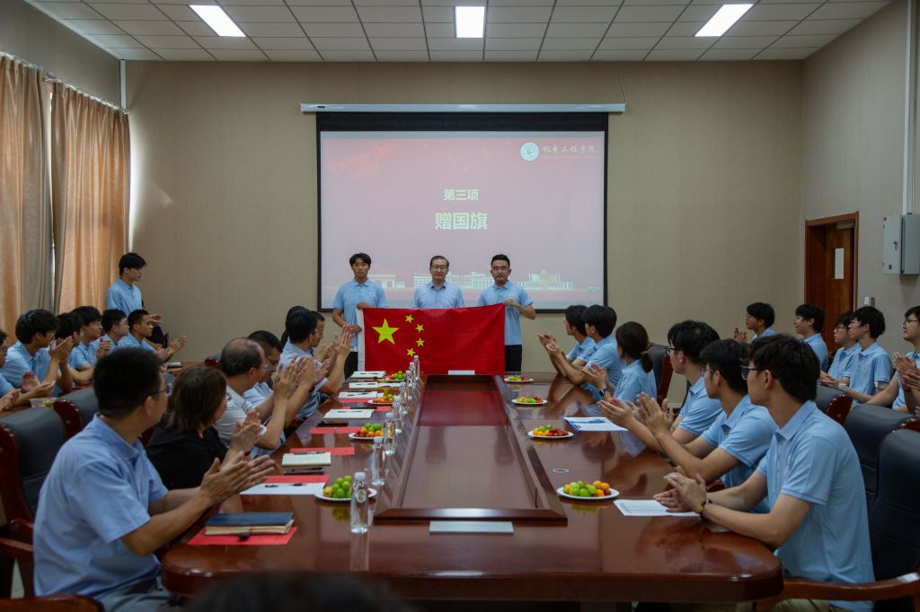 任允晓指出,爱国是青春最亮的底色,并从铭记家国、促进友谊、成为精英人才三个方面对同学们提出期望:一是无论身处何方,都要铭记家国,以校为荣、以国家为念,更要珍视自身,健康成长;二是鼓励同学们做中韩友谊的桥梁,广交朋友,善交朋友,以真诚友善传递中国温度,促进文化交流互鉴;三是寄语大家明确留学初心,真学苦学先进科学知识,在海外深耕专业,将国际视野与机电人的实干精神融合,学成归来为学院、为国家添彩。李春家强调留学生应遵守当地法律法规,牢记总体安全,展现新时代中国青年风采,祝贺大家出国留学,祝大家学成归来仍少年。宋飞为同学们详细解读出国留学宝典,嘱托大家兼顾学业与安全,既要攻克语言难关,狠抓专业外语,也要增强防范意识、保障在韩安全。